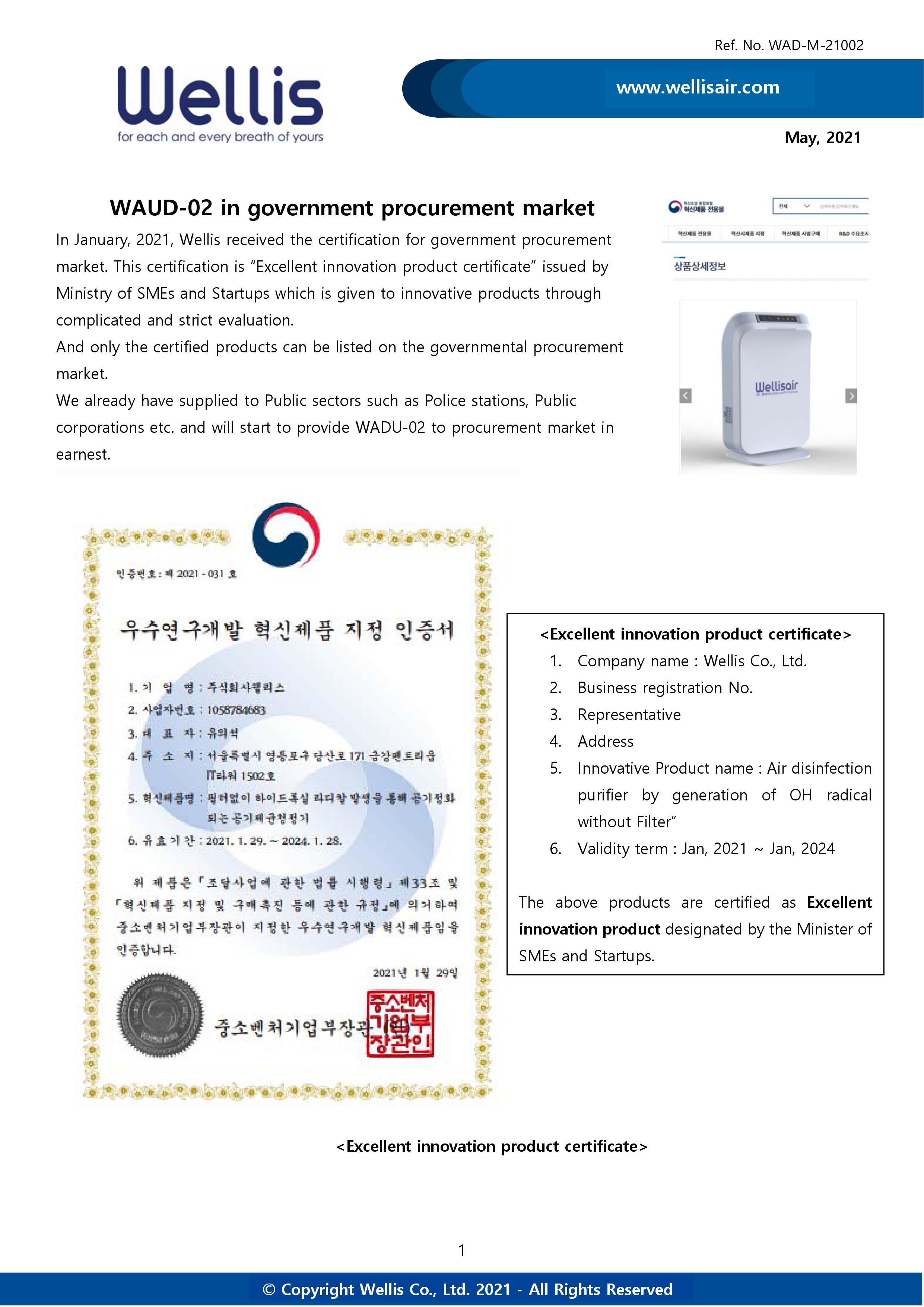Wellis is your indoor air quality solution by sterilizing 99.9% of pathogenic bacteria in the air and surface areas. It helps deodorize any foul odor and remove VOCs or Volatile Organic Compounds in the air.