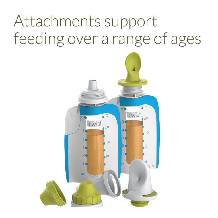 Transition to solids with the mess-free convenience of Twist Pouches with these reusable Snack Spouts™.