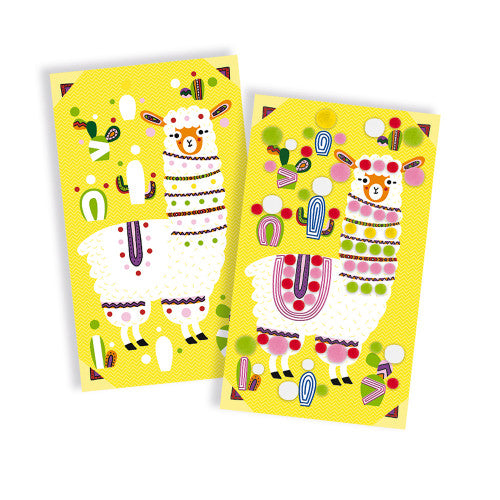 The Janod Llama Pom Poms kit will encourage dexterity and artistic flair! Each set contains 3 self-adhesive boards, 200 pom poms, 2 cotton threads to decorate your llama, and a tool to lift the adhesive flaps on the board. Ole!